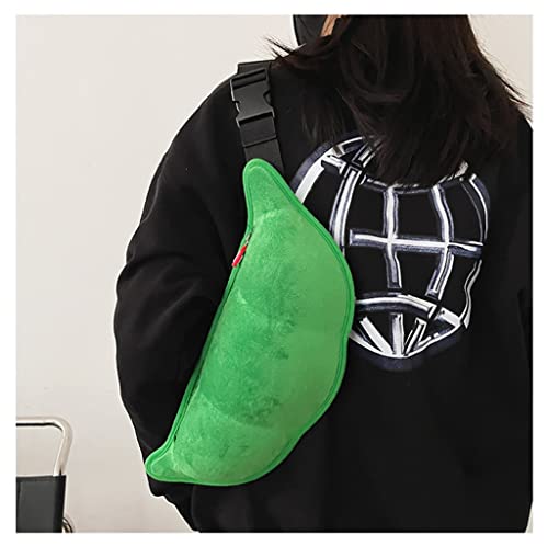 Edamame Crossbody purse design with soft plush with durable polyester lining,durable and cushy.Size: 15.7 * 5.9 * 1.2inch / 40 * 15 * 3cm. Cute Pea Pod with adjustable straps, easy to carry and adjust as shoulder bags or Sling Backpack.This small and fashion fanny pack has enough storage for your cell phone, makeups, keys, glasses and credit cards and other small items.Cute 3D green Edamame design catchs everyone's eyes, suitable to everybody.Great used as a couple outfits, or both wear this bag hang out with your best friend.For unisex of all ages in all seasons suitable appointments, shopping, hiking, travlling. It is also suitable as a special gift for your friends, girlfriends, and daughters. Perfect for everyday use. premium materials and excellent craftsmanship ensure long-lasting durability.