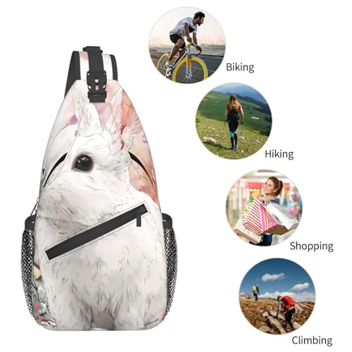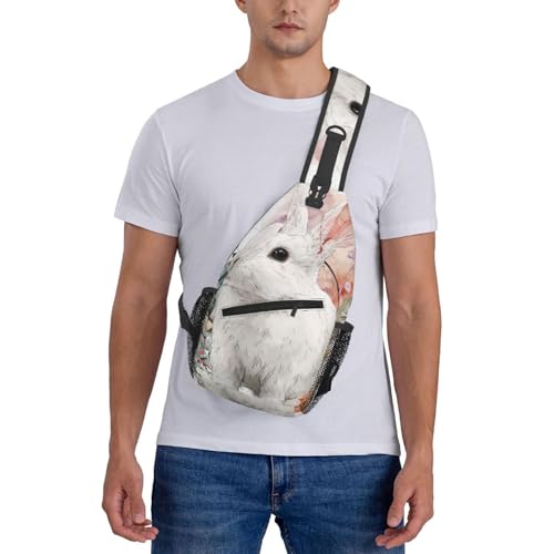 Rabbits And Floral Multi Functional Adjustable Single Shoulder Crossbody Bag,Casual Chest Bag, Suitable For Daily Travel,Unisex