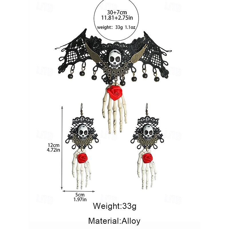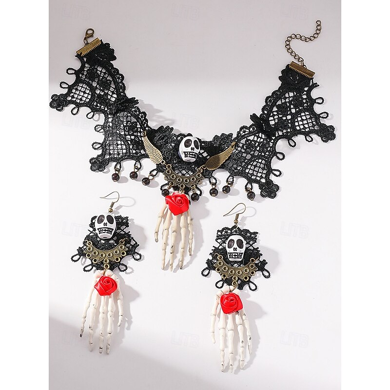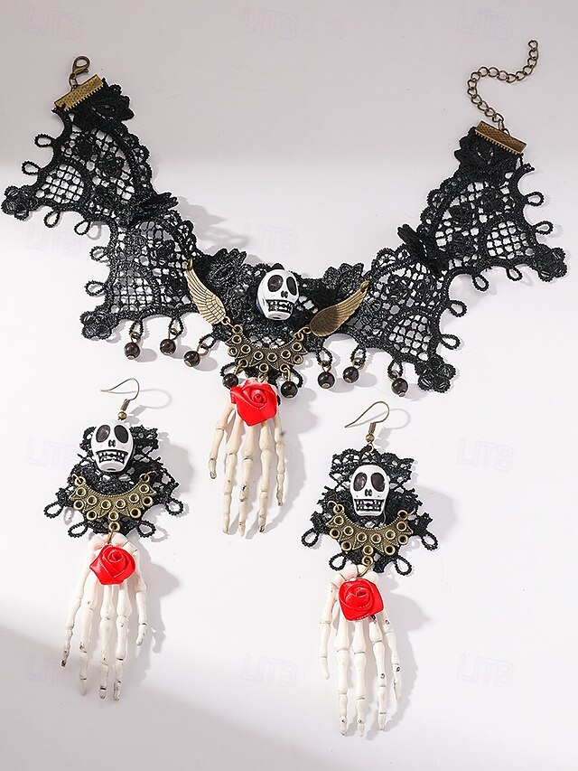$14.99 - Women's Halloween Gothic Lace Choker Necklace & Skeleton Hand Drop Earrings Set – Skull & Red Rose, Adjustable Alloy Victorian Punk Jewelry for Cosplay, Costume Party, Night Out & Festivals 2025. Shop for cheap Halloween Accessories online? Buy at lightinthebox.com on sale today!