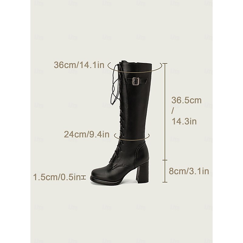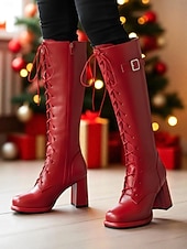 More information about Women's Red Faux Leather Platform Knee-High Lace-Up Fashion Boots with Side Zipper - Chunky Heel Boots for Daily Outfits and Fall Winter Streetwear