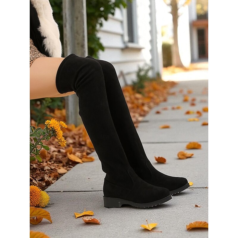 Why Choose Women's Black Over the Knee Boots – Faux Suede Low Heel Winter Boots for Streetwear and Casual Outfits?