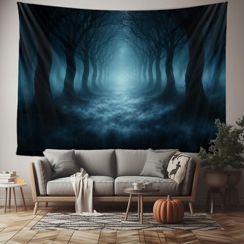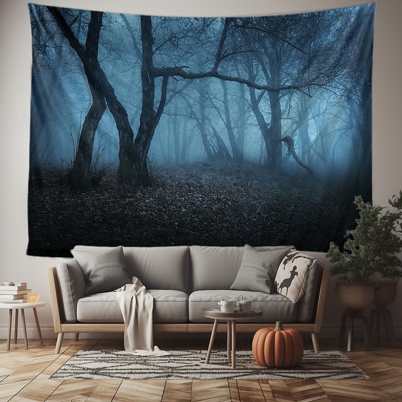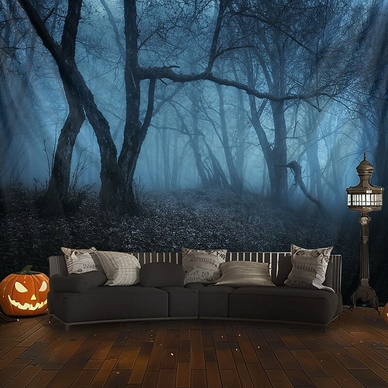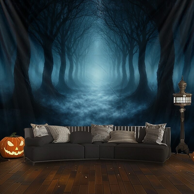 Why Choose Halloween Forest Scene Wall Tapestry Backdrop – Spooky Dark Woods with Jack-o'-Lanterns, Creepy Night Atmosphere, Haunted Home Decoration for 2025 Halloween bedroom and livingroom?