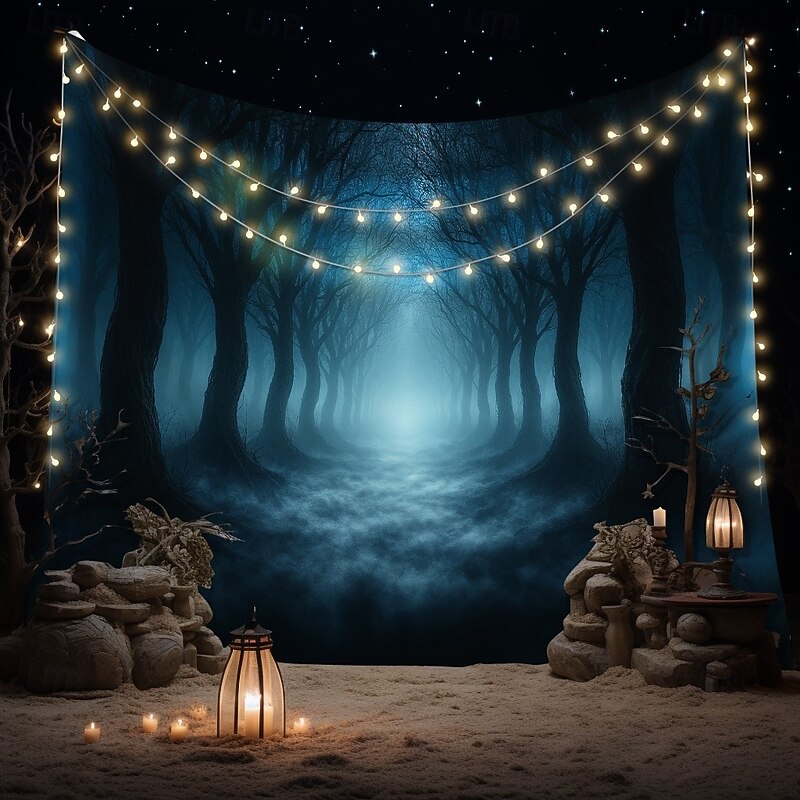 $13.99 - Halloween Forest Scene Wall Tapestry Backdrop – Spooky Dark Woods with Jack-o'-Lanterns, Creepy Night Atmosphere, Haunted Home Decoration for 2025 Halloween bedroom and livingroom 2025. Shop for cheap Halloween Wall Tapestries online? Buy at lightinthebox.com on sale today!
