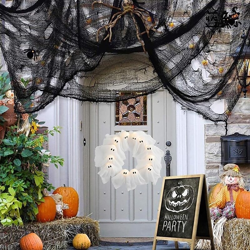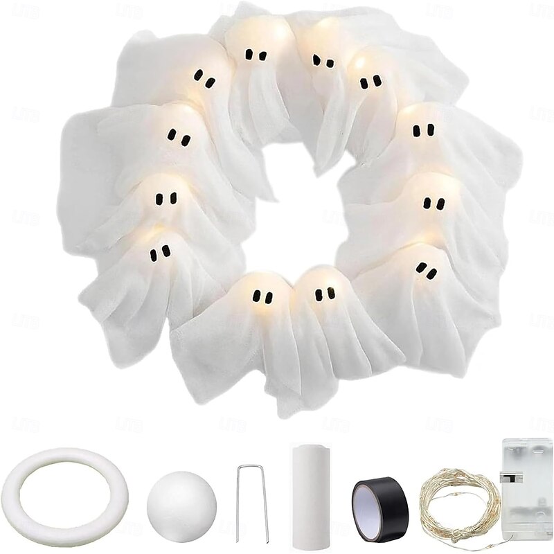 $30.99 - Halloween Ghost Wreath 12 LED Light-Up White Ghost Garland with LED Lights Spooky Indoor & Outdoor Hanging Decoration for Front Door 2025. Shop for cheap Halloween Wreaths & Floral Decorations online? Buy at lightinthebox.com on sale today!