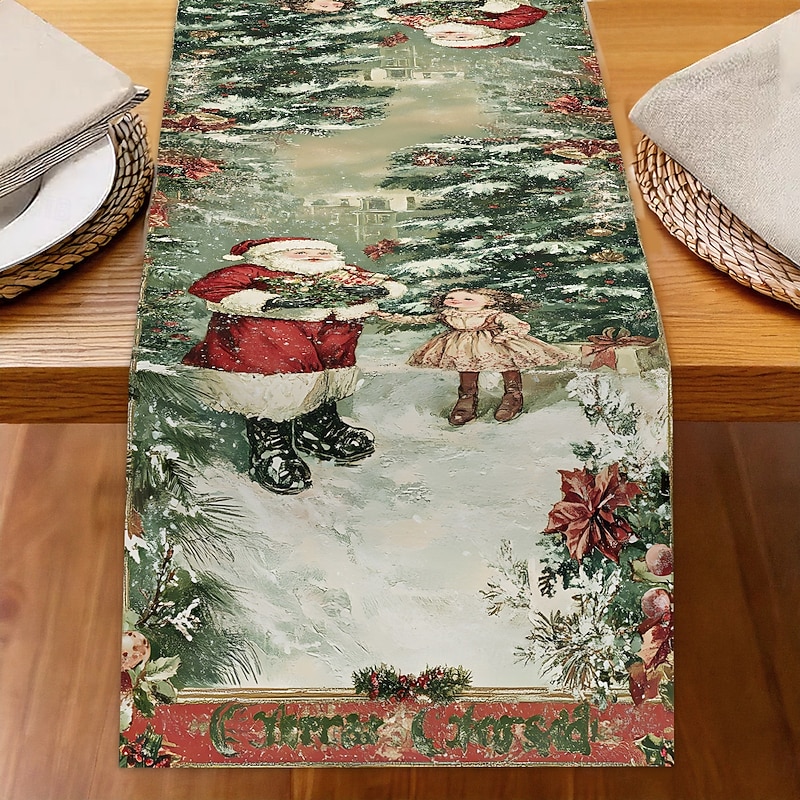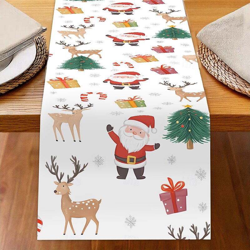 $6.99 - Christmas Linen Table Runner, Holiday Cartoon Santa & Snowflake Print Tablecloth, Dining Table Decor, Living Room & Countertop Festive Decoration 2025. Shop for cheap Christmas Kitchen online? Buy at lightinthebox.com on sale today!