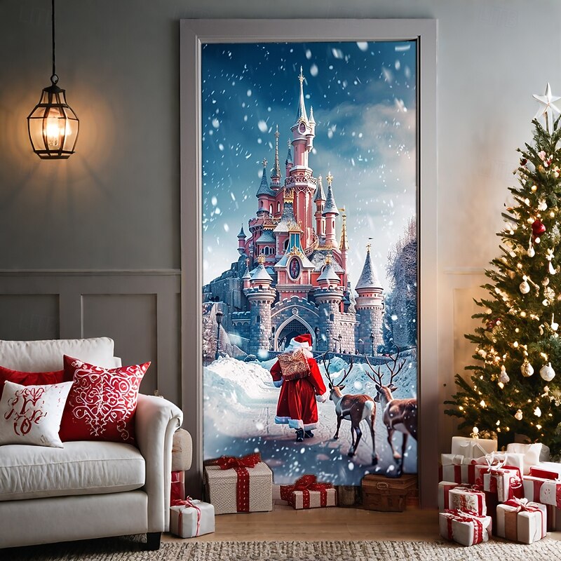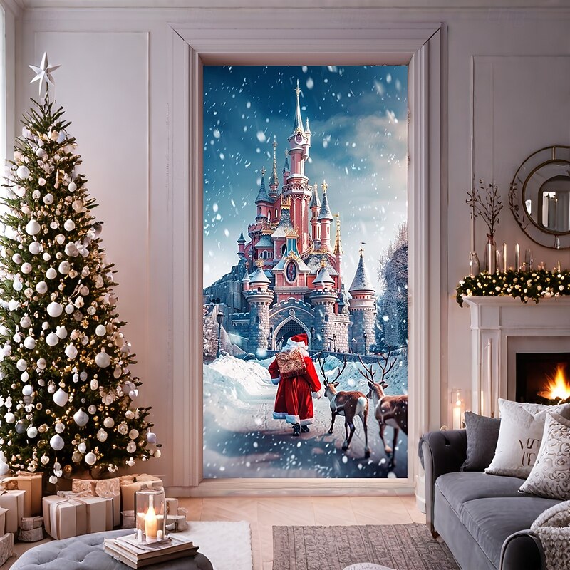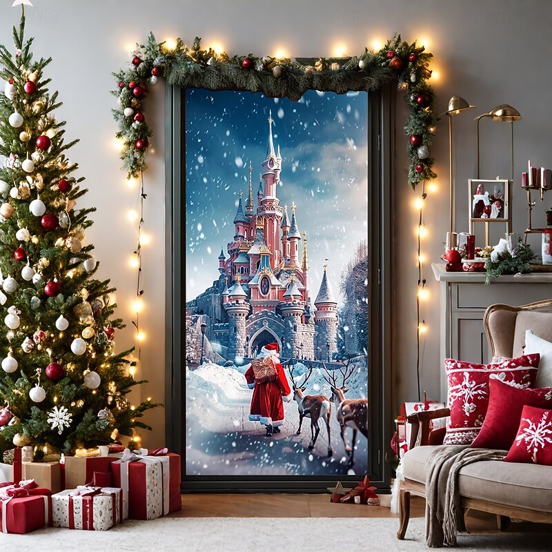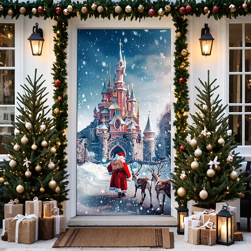 Why Choose Christmas Door Decorations Door Covers Xmas Santa Castle Door Tapestry Door Curtain Decoration Backdrop Door Banner for Front Door Farmhouse Holiday Party Decor Supplies Indoor/Outdoor?