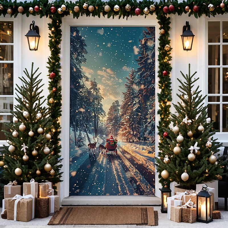 Deck out your office door and front porch this Christmas season with the leading holiday decorations! From door covers featuring Santa’s Workshop designs to festive porch door cover