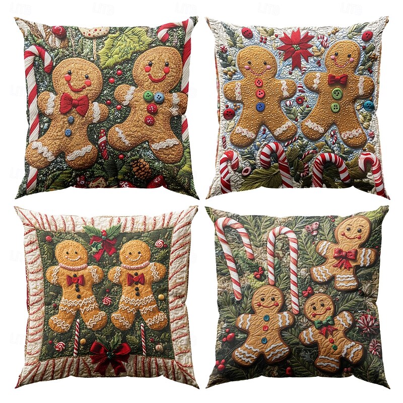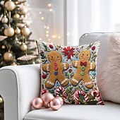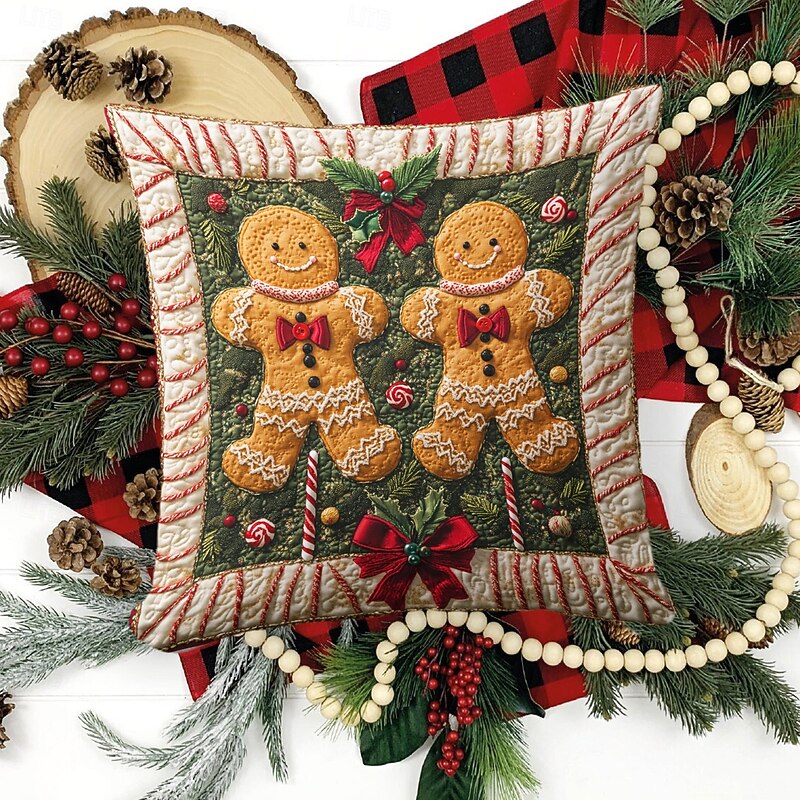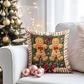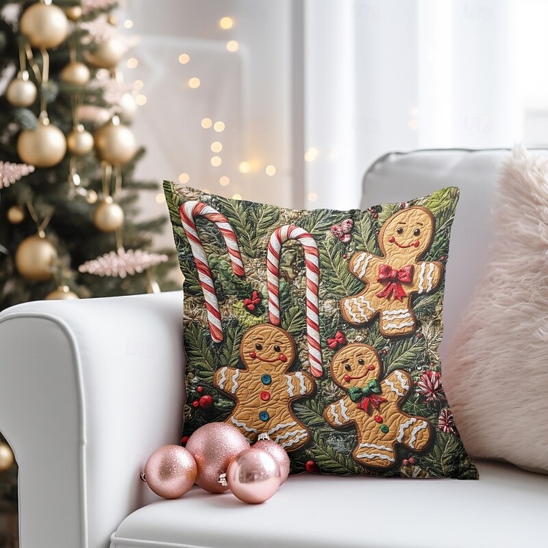Christmas Decorations Decorative Toss Pillows Cover 1PC Quilting Gingerbread Man gentle Square Cushion Case Pillowcase for Bedroom Livingroom Sofa Couch Chair