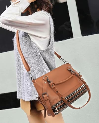 Origin: ImportedClosure type: ZipperLining: PolyesterMaterial: premium faux leather with rivet decoration,waterproof and wear-resistant,constructed with detailed streamlined stitching,excellent workmanshipCapacity: 19.8Lx15.7Hx4.7W.Large space for all the daily essentials,which can hold A4 files, books, magazines, wallet, water glass, sun hat, clothes as well as many accessories.Design: Unique punk style with rivet design,sturdy and durable,modern enough to match all your outfits at all seasons,stylish and elegant shoulder bagThis shoulder bag for women comes with handle strap and detachable shoulder strap, allowing you to use it as a handbag, shoulder bag,or crossbody bag to suit your style and needsEuropean and American style, casual, street style, the first choice for all seasons, multi-purpose hobo outlook,perfect gift for your loved ones festive season of Christmas New Year Anniversary and birthday Perfect for everyday use. High quality materials and excellent craftsmanship ensure long-lasting durability.