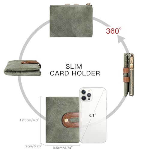 Brand: RNIEGAColor: GreenMaterial: LeatherClosure Type: ZipperForm Factor: Bi-Fold ZipperHigh quality Womens Wallet: This small wallet for women is made of high-quality vegan leather and comes with an upgraded fabric lining, providing a comfortable touch and durability. With button buttons and zippered pockets, keep your cards, cash, coins, and keys neatly organized and secure.Multifunctional: The small women's wallets come with 8* card slots, 1* ID card window, 1* cash compartment, and 1* side zipper coin pocket. It is spacious enough to accommodate all your essentials and outdoor gear. Smooth zipper for quick access, making it a top pick as credit card wallets for women.RFID Protection: This bifold wallet for women is equipped with advanced RFID shielding technology, which can effectively block RFID chip signals, prevent illegal scanning by RFID scanners and readers, and ensure the security of your personal and financial data during women's shopping, travel, or commuting.Compact and Spacious: Size: 10x2.5x12.5cm/5.0x 3.8x 0.7 '', compact wallet women can be perfectly placed in a jacket pocket, large wallet, or crossbody bag. Despite its compact size, it can accommodate all your essentials, making it perfect for women who prefer small card wallets that are not bulky but spacious.Gift for Lover: A zipper wallet is the perfect choice for any occasion such as Valentine's Day, Thanksgiving, Mother's Day, New Year, Christmas, birthdays, anniversaries, weddings, etc. Surprise your girlfriend, daughter, friend, lover, or family with this outstanding and unique wallet Perfect for everyday use. High quality materials and excellent craftsmanship ensure long-lasting durability.