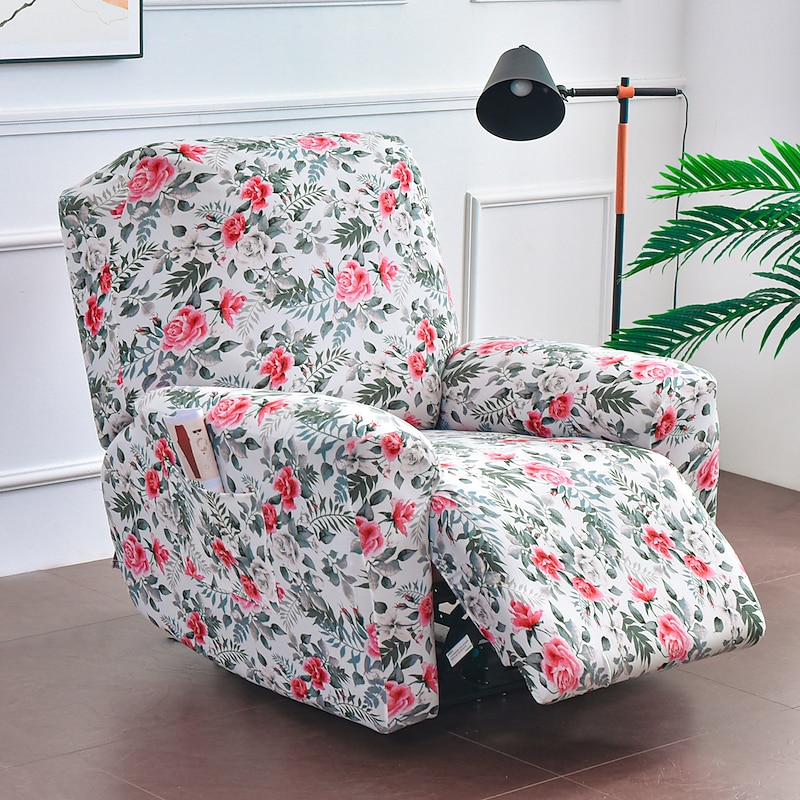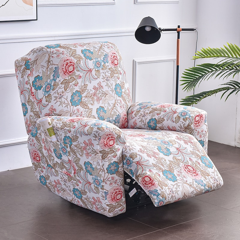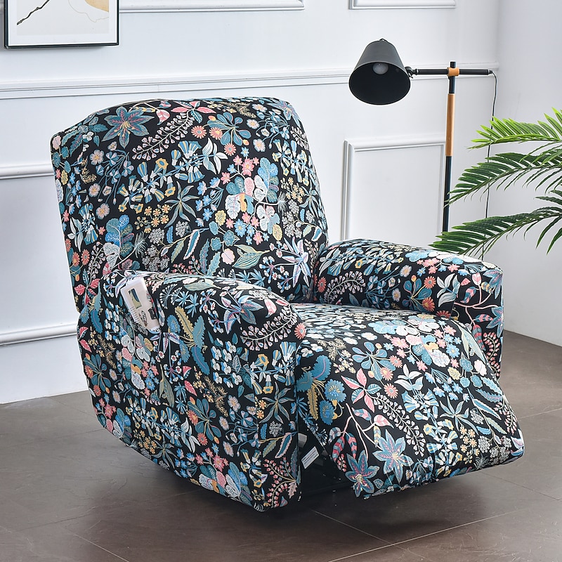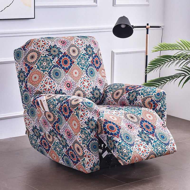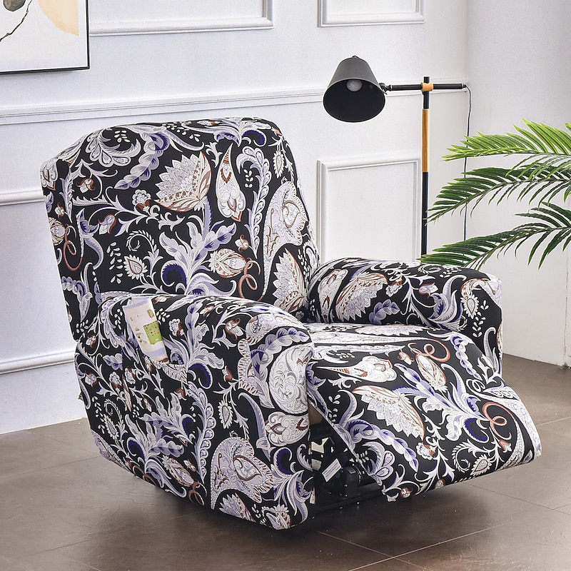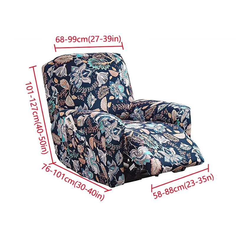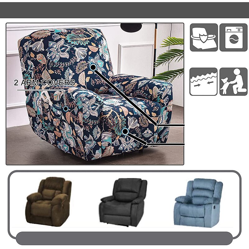 Stretch Recliner Covers Slipcover Graphic Print Anti-Slip Fitted Cover Couch Furniture Protector with Elastic Bottom(Include 1 Backrest Cover, 1 Seat Cover, 2 Armrest Cover)