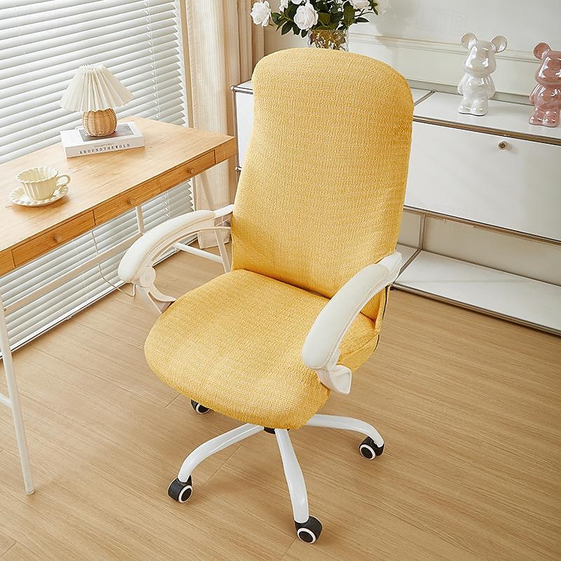Office Chair Cover Flower High Back Dining Chair CoverComputer Swivel Chair Hotel Zipper Anti Slip One-Piece Armchair Protective Dust Cover