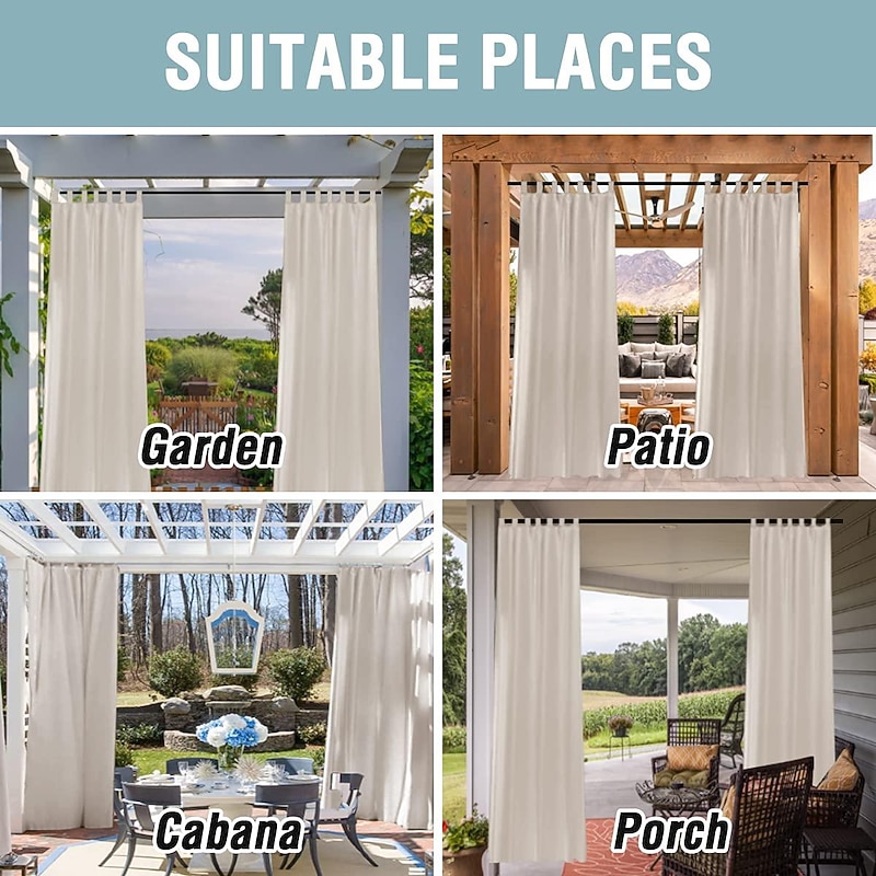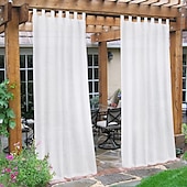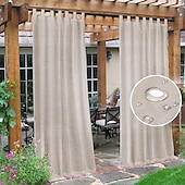 Highlights PACKAGE CONTENT & PRODUCT DIMENSIONS: Our weatherproof outdoor sheer curtains are sold in panel (1 panel in each package). The curtains are constructed with silver rust-proof grommets with inner. DURABLE, BREATHABLE & PRIVACY COMFORT FABRIC: sheer outdoor curtains are crafted from a premium, weather resistant fabric (Linen composition). Our outdoor curtains provide the perfect amount of privacy and are breathable allowing air to pass through them, creating a cozy space. FADE RESISTANT SHEER OUTDOOR CURTAINS: Our outdoor curtains filter the amount of sunlight getting into your space creating a supple ambiance. Our fade resistant fabrics’ performance is an integral part of the fabric, not an applied finish that would wash off over time. WATERPROOF CUTAINS PERFECT FOR EVERY INDOOR & OUTDOOR SPACES: These waterproof voile panels will ensure your outdoor living spaces and furniture stay free from rain or snow. They are perfect for both indoor and outdoor spaces such as bedroom, living room, patio, front porch, cabana, gazebo, and more. SIMPLE FABRIC CARE: Simply clean these semi sheer outdoor curtains in a washing machine with cold water, tumble dry on low, iron at low temperature if need. Because the color goes to the core of the fiber, the fabrics will not lose their color.