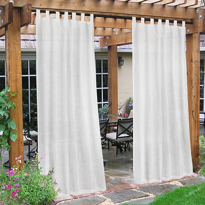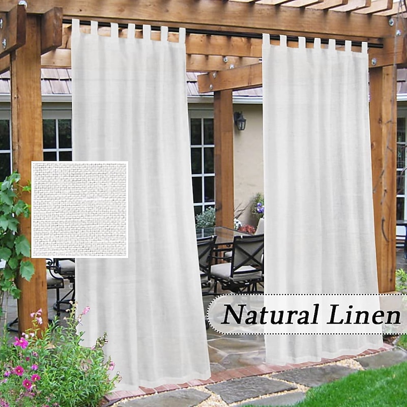 sizzling ! Outdoor Linen Sheer Curtains for Patio Waterproof Indoor/Outdoor Divider Privacy Added Light Filtering Porch Decor with Detachable Self-Stick Tab Top for Gazebo/Cabana, Natural, 2 Panels