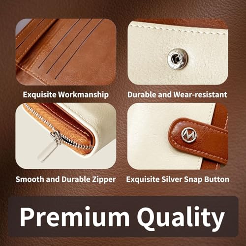 More information about Wallet Women Small Leather Bifold Billfolds Zipper Coin Pocket Cash Compact Credit Card Holder with Detachable ID Window (Beige Brown)