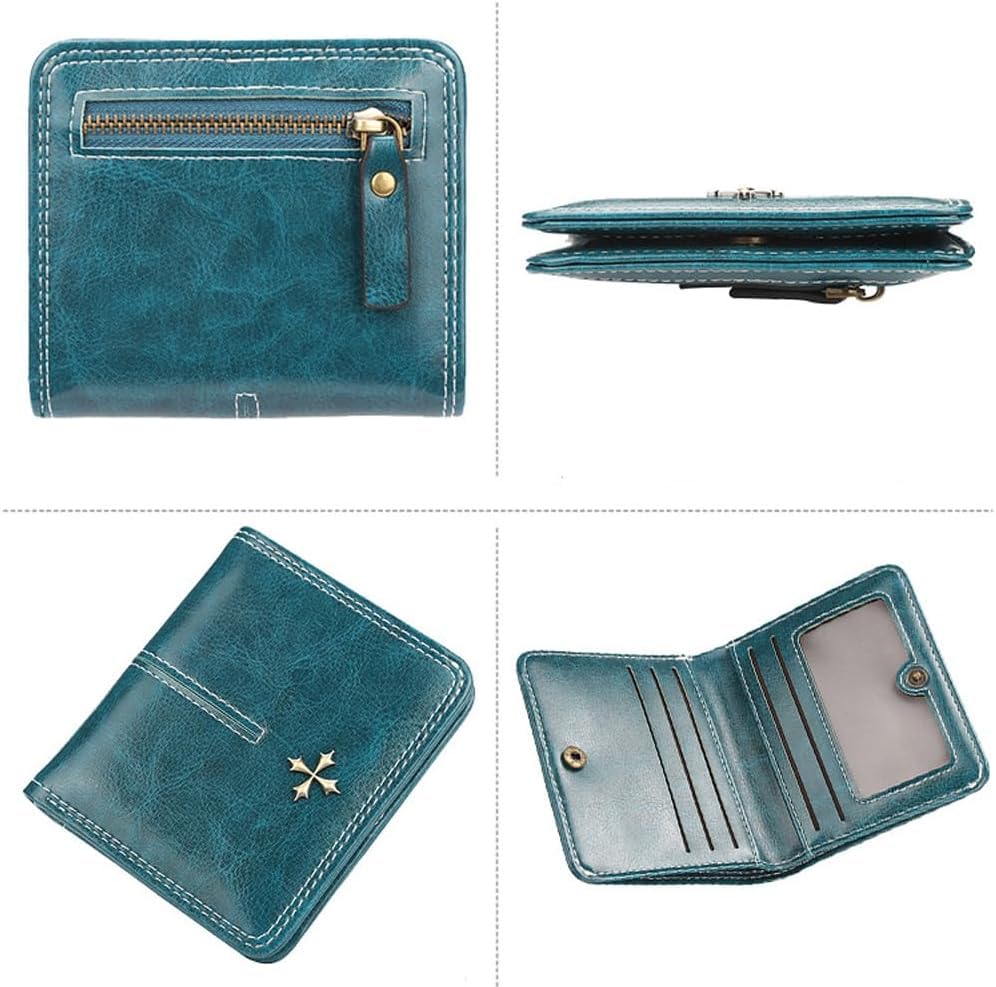 sizzling ! Small Vintage Genuine Leather Wallet for Women Bifold Zip Coin Pocket Goth Style Mini Purse Red (Blue)