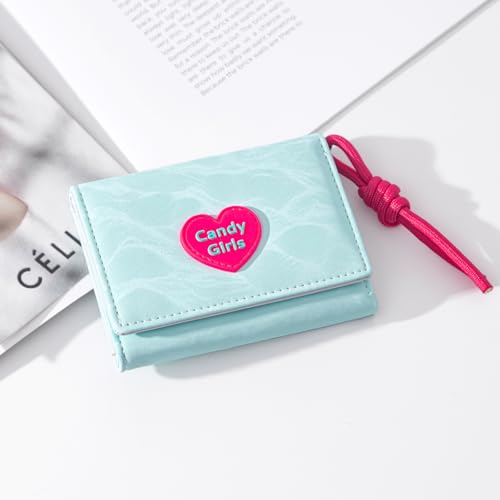 Brand: Sunwel FashionColor: BLUEMaterial: PolyurethaneStyle: Y2kPattern: CherryKawaii Wallet: Small trifold wallet with soft textured. The cute wallet features a uniquely designed with heart rubber with letter Candy Girls it's so cute and eye-catching.The card wallet has 7 cards slots, 1 cash compartment and ID Windows. It is enough room for your ID card, credit cards, gift cards and discounted cards, cash, bills,ect. Roomy and Handy.The size of mini wallet is 3.14 x 0.86'' x 4.13 inches/8 x 2.2 x 10.5 cm. The small card holder is slim and lightweight, easy to put in your handbag, shoulder bag, crossbody bag, sling bag or your pocket.This aesthetic Y2K wallet is the perfect piece to match cloths, enough capacity to meet your daily use, sophisticated design for all occasions.Perfect gift for girlfriends, daughter, mother, friends. It's also a perfect gift for Christmas, New Year, Thanks Giving Day, Birthdays, Mother's Day Perfect for everyday use. excellent materials and excellent craftsmanship ensure long-lasting durability.