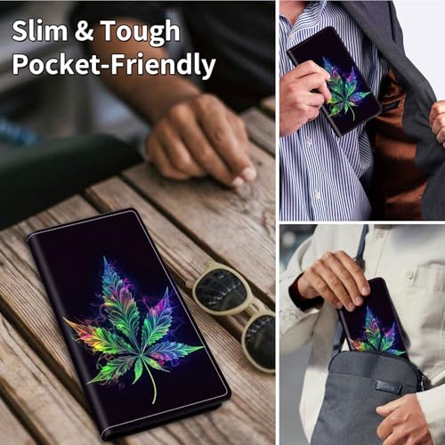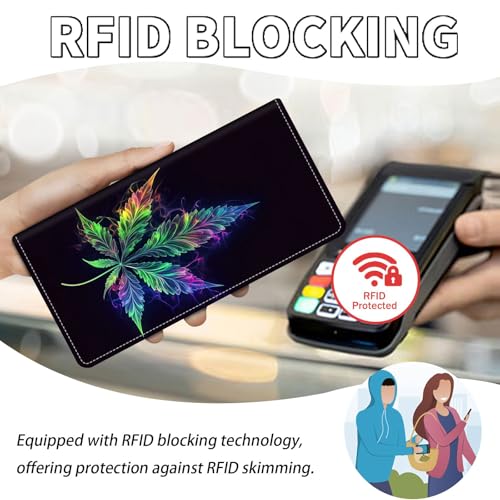 sizzling ! Wallet Women Ultra Slim Thim PU Leather Womens Wallet RFID Blocking Credit Card Holder Bifold Long Ladies Billfold, Colourful Marijuana Leaf