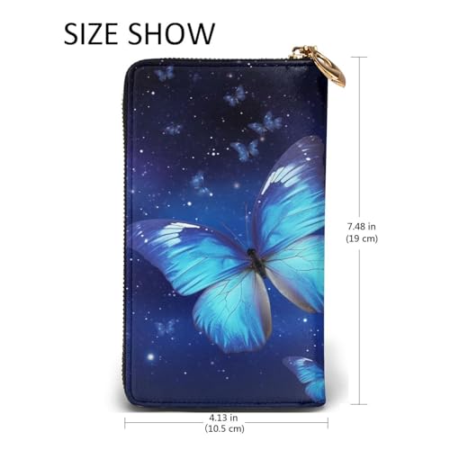 sizzling ! Blue Starry Butterfly Wallet for Men Women Long Purse Leather Clutch Large Business Handbag Travel Phone Holder Credit Card Holder Money Case with Zipper Leather Wallets Gift