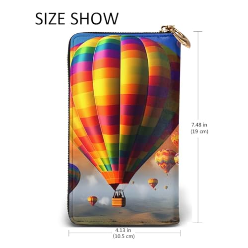 sizzling Air Balloons Wallet for Men Women Long Purse Leather Clutch Large Business Handbag Travel Phone Holder Credit Card Holder Money Case with Zipper Leather Wallets Gift