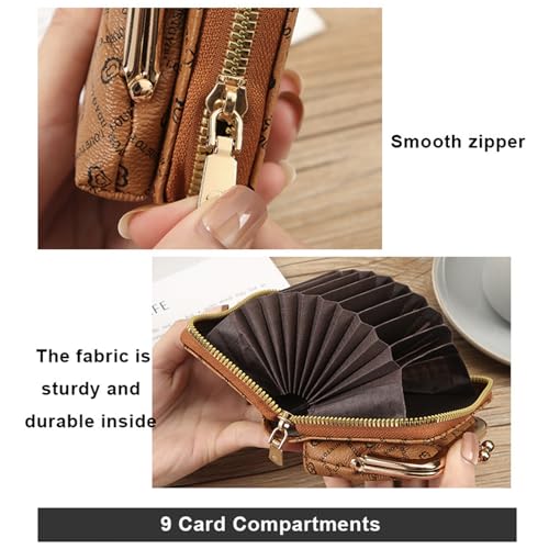 Women purse brown Short zipper wallet card holder large capacity coin holder for women