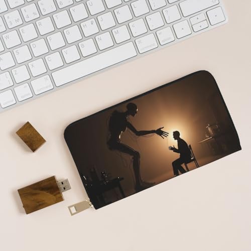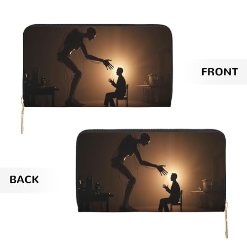 Minimalist Black Robot Print Wallet Women, Leather Bifold Multi Card Wallet, Long Purse Women's Wallets
