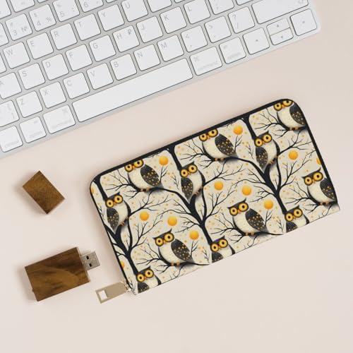 Vintage Owl Tree Pattern Print Wallet Women Men, Long PU Leather Wallets for Women, Cute Womens Travel Wallet Purse Pouch with Zipper Pocket