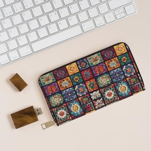 Vintage Floral Pattern Print Wallet Women Men, Long PU Leather Wallets for Women, Cute Womens Travel Wallet Purse Pouch with Zipper Pocket