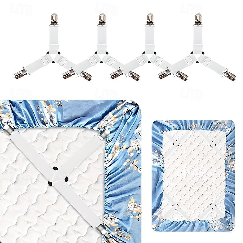 sizzling ! 4 Pcs/Set Bed Sheet Fasteners Clips - Elastic Bed Sheet Holder Straps, Mattress Cover Grippers, Quilt and Blanket Organizers