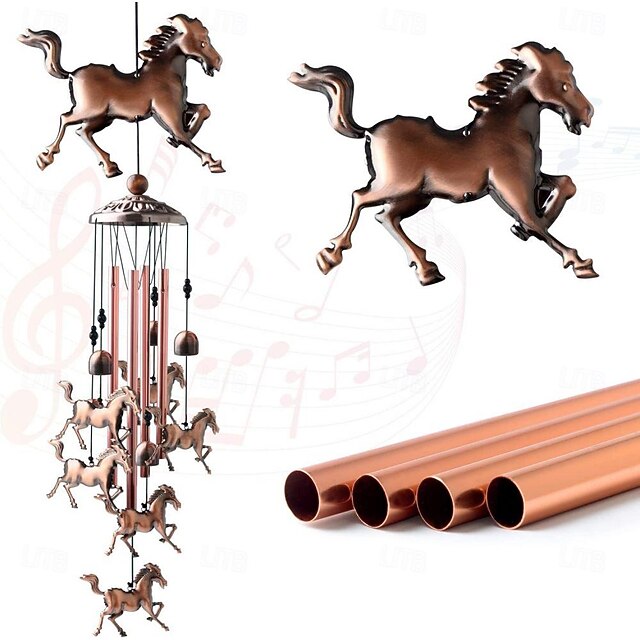 Highlights UNIQUE DESIGN - Handcrafted Copper Horse Wind Chimes with 4 aluminum tubes, 6 small lucky horses, 1 big lucky horse, and 6 iron balls. Each tube creates a unique tone for a harmonious and pleasant sound. SYMBOLIC MEANING - Wind chimes symbolize love, safety, happiness, health, peace, and wealth. Their sweet sounds bring joy and relaxation, making them a perfect memorial gift. charming DECOR - Lightweight and easy to hang, these wind chimes add a vibrant melody to gardens, balconies, windows, and living spaces. They also serve as a tribute to special people and memories. PERFECT GIFT - An ideal gift for birthdays, holidays, or memorials, these wind chimes offer unique design and meaningful symbolism, bringing comfort and happiness to recipients. DURABLE & WEATHER-RESISTANT - Made from high-quality materials, these wind chimes are built to withstand various weather conditions, ensuring long-lasting beauty and melody for both indoor and outdoor spaces. Perfect for everyday use. excellent materials and excellent craftsmanship ensure long-lasting durability.