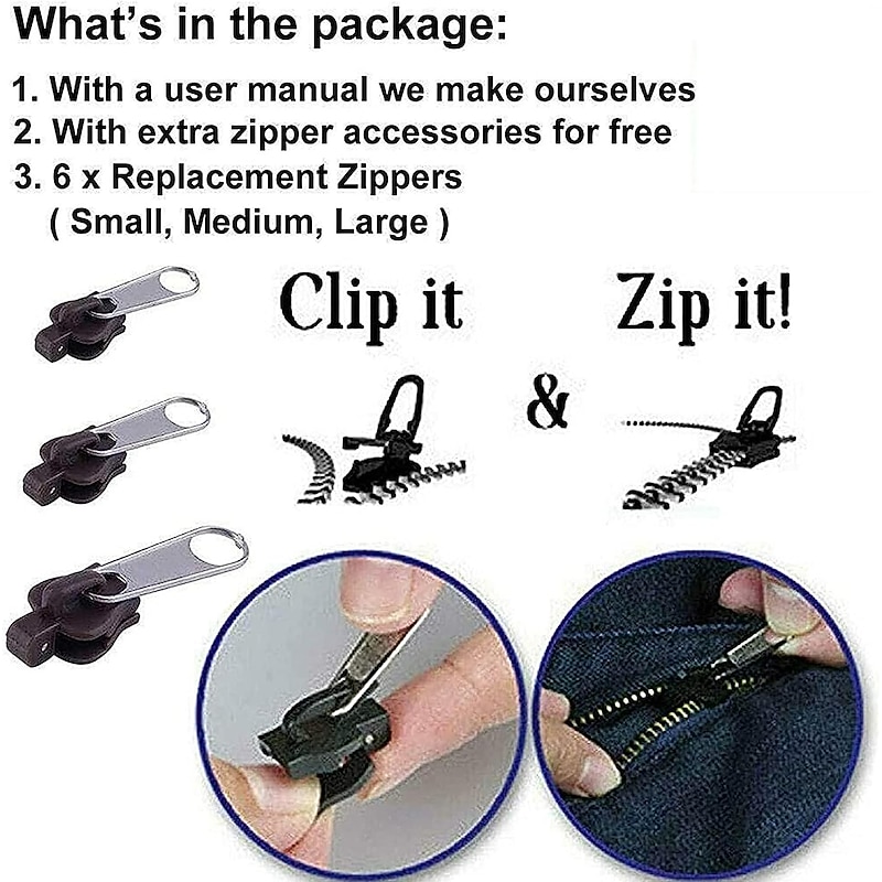 $6.99 - 6pcs Fix Zip Puller Set- Zip Slider Repair Instant Kit - Fix Zipper Removable Rescue Replacement Pack, Instant Zipper Set 2025. Shop for cheap Sewing & Knitting & Crochet online? Buy at lightinthebox.com on sale today!
