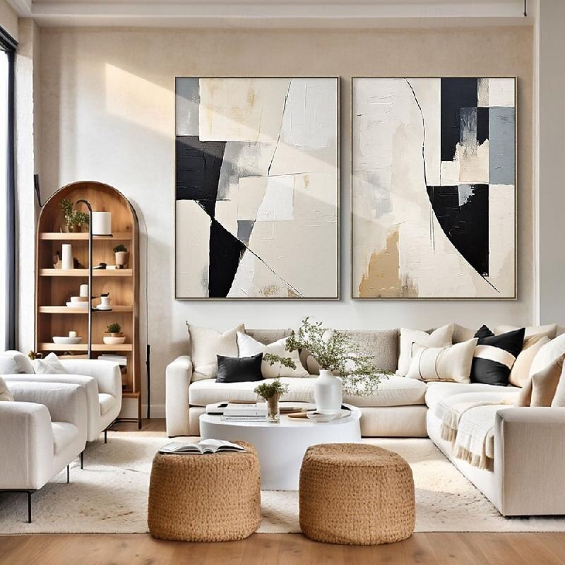 More information about Handmade Beige White Black Minimal Art Beige White Wabi-sabi Wall ArtLarge Beige Abstract Wall ArtBlack Textured Art Oil Painting