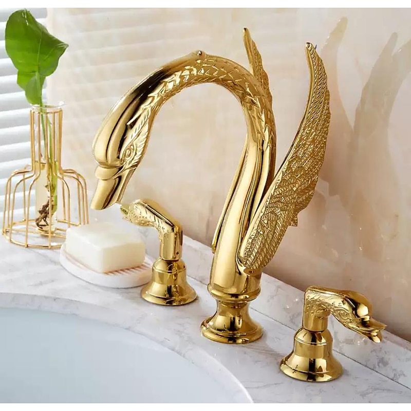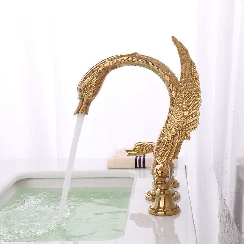 This Widespread Bathroom Sink Mixer Faucet, 2 Handle 3 Holes Basin Taps Swan Noble Luxury Golden and Oil-rubbed Bronze Bath Taps combines elegant design with practical functionality. Every detail has been carefully considered to ensure you get the best possible experience. The magnificent construction means this product will serve you well for years to come.