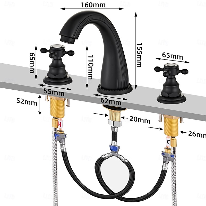 More information about Faucet Oil Rubbed Bronze Widespread Bathroom Sink Faucet Basin Tap Mixer Supply Hose Cross Handle 2 Handles 3 Holes