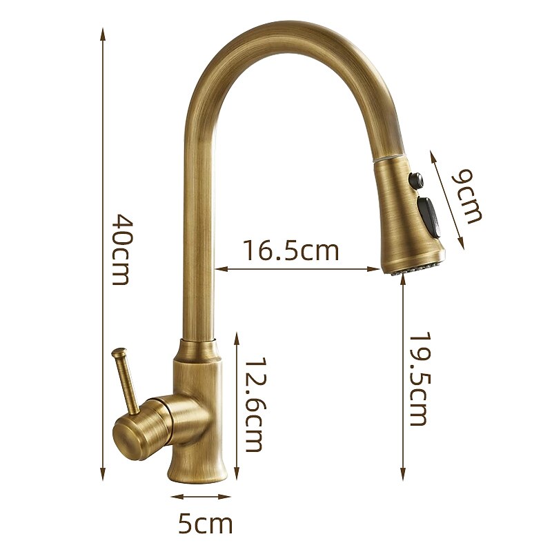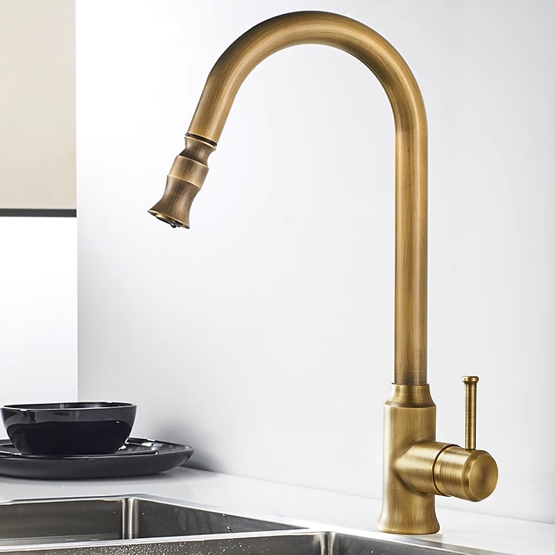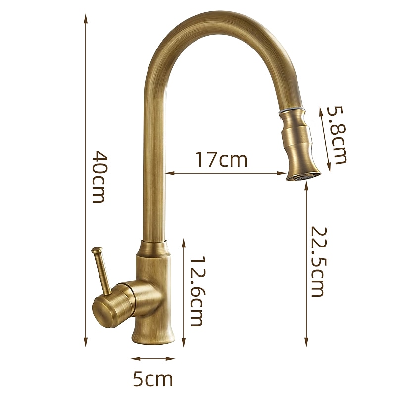 More information about Traditional Kitchen Faucet Pull Out Sink Mixer Vessel Brass Taps, 360 Degree Single Handle Vintage Taps with Cold and trending Hose