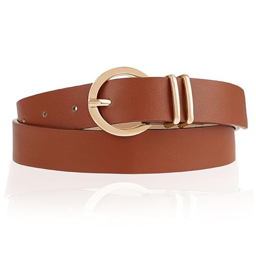 Why Choose Leather Belts for Women, Women Belts for Jeans Dresses Ladies Waist Belt with Fashion Gold Buckle Brown Black Belt?