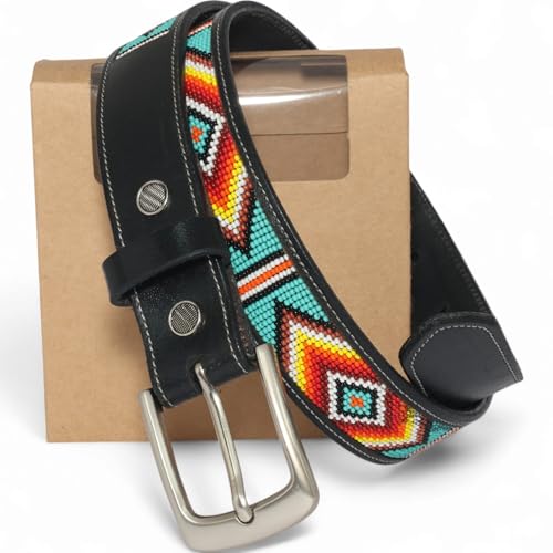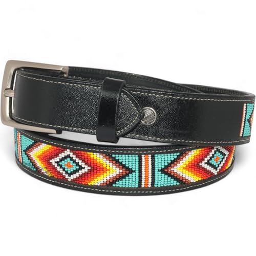sizzling ! Handmade Western Rodeo Heavy Duty Beaded Full-Grain Unisex Leather Gift Belt.