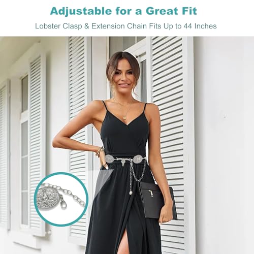 • Adjustable Fit for Versatility: Equipped with a lobster clasp and extension chain, the cowgirl waist belt fits waists up to 44 inches. It adjusts easily for comfort and a tailored silhouette that suits various outfits