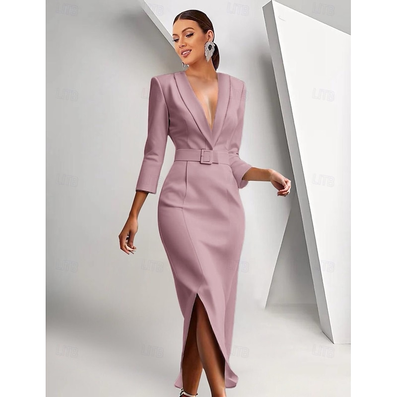 More information about Tuxedo Dress Mermaid / Trumpet Mermaid Wedding Guest Stretch Crepe Elegant 3/4 Sleeve Pleated Ankle Length Shawl Lapel