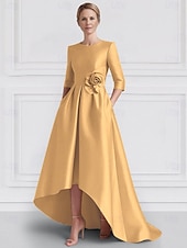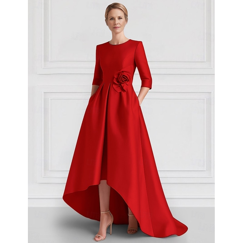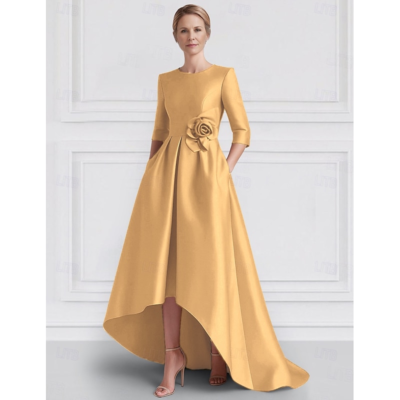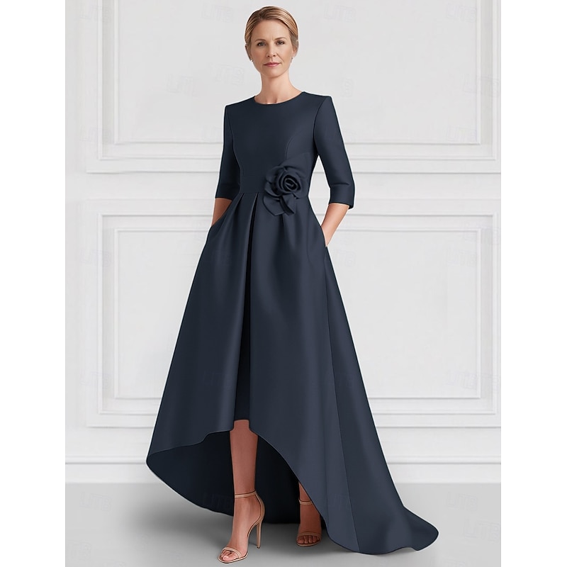 Why Choose A-Line Evening Gown Elegant Dress Formal Wedding Asymmetrical Half Sleeve Crew NeckMother Of the Bride Dress Stretch Satin with Pocket?