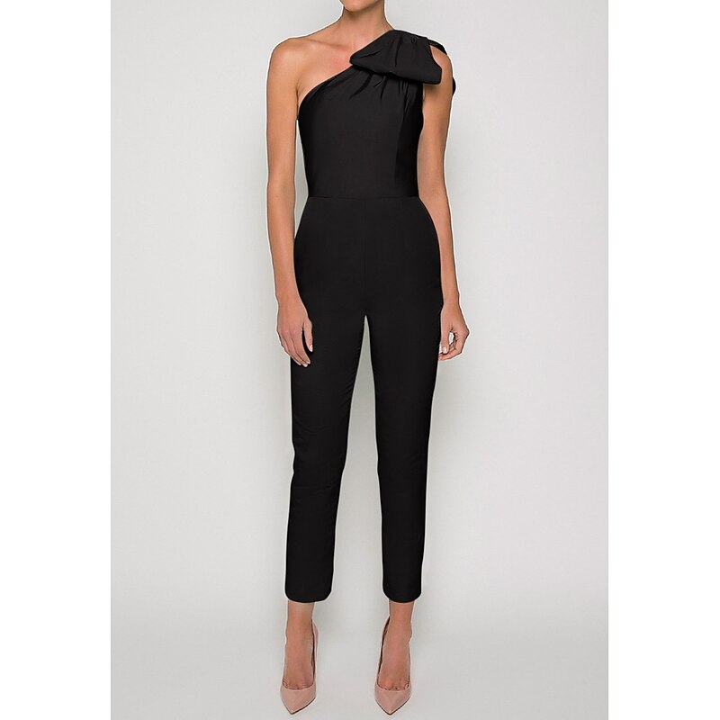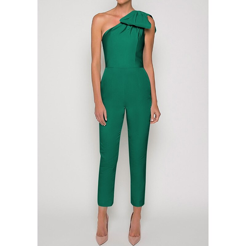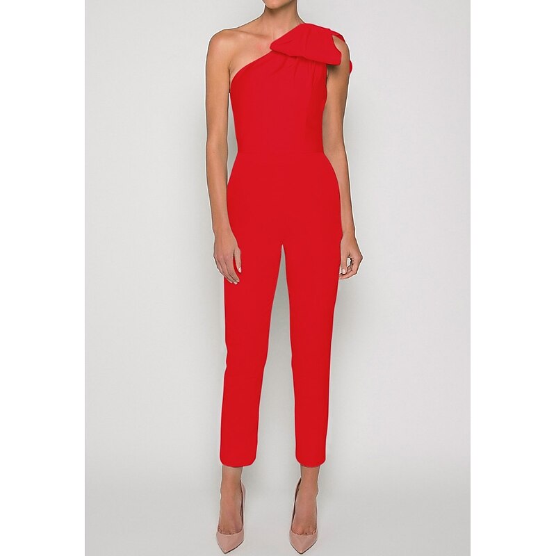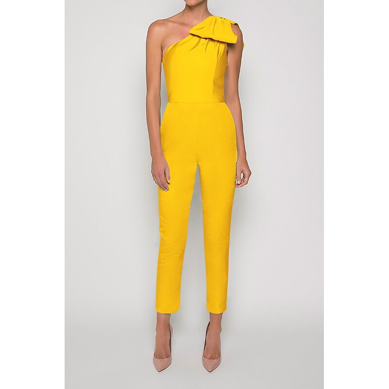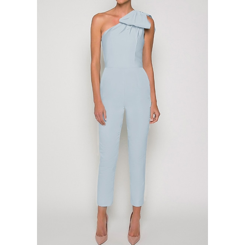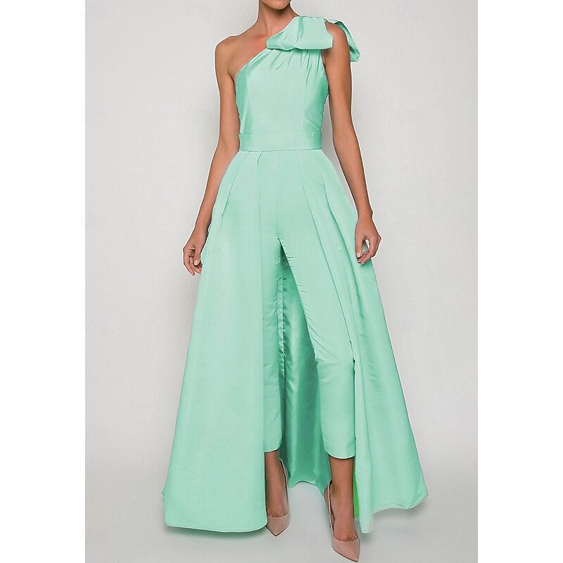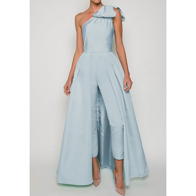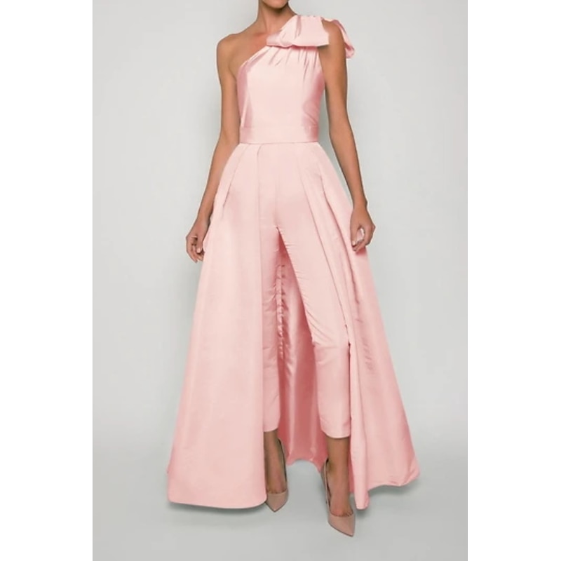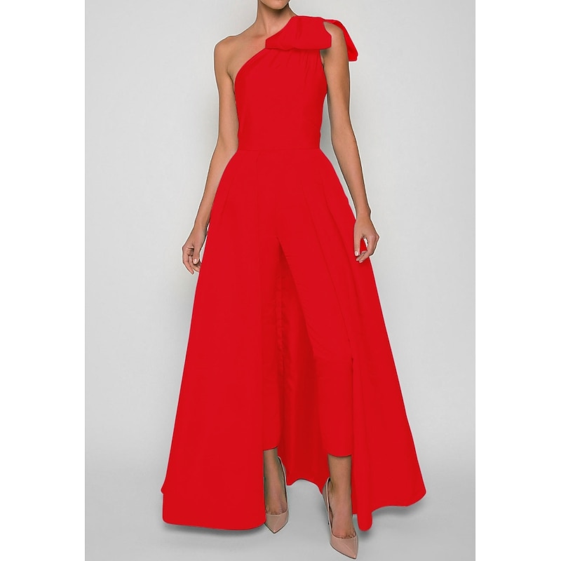 More information about Jumpsuits Evening Gown Elegant Dress Formal Wedding Guest Floor Length Sleeveless One Shoulder Convertible Stretch Fabric with Bow(s) Pleats Overskirt