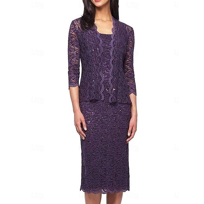 sizzling ! Two Piece Dress Sets Mother of the Bride Dress Elegant Square Neck Knee Length Lace 3/4 Length Sleeve with Lace
