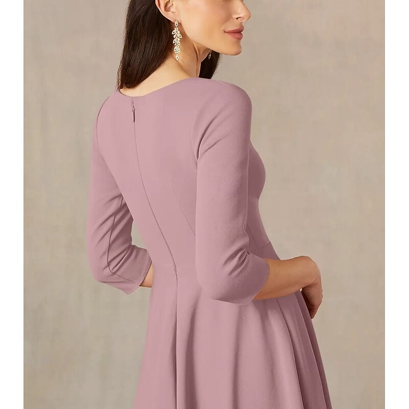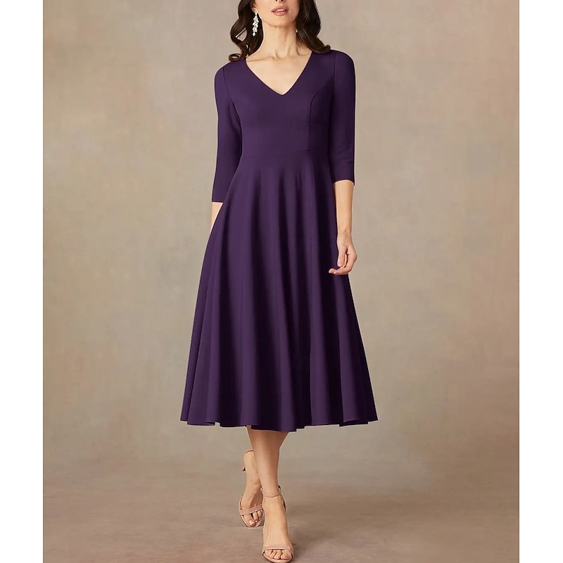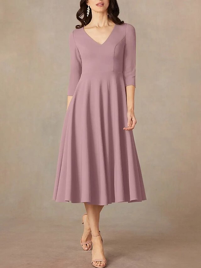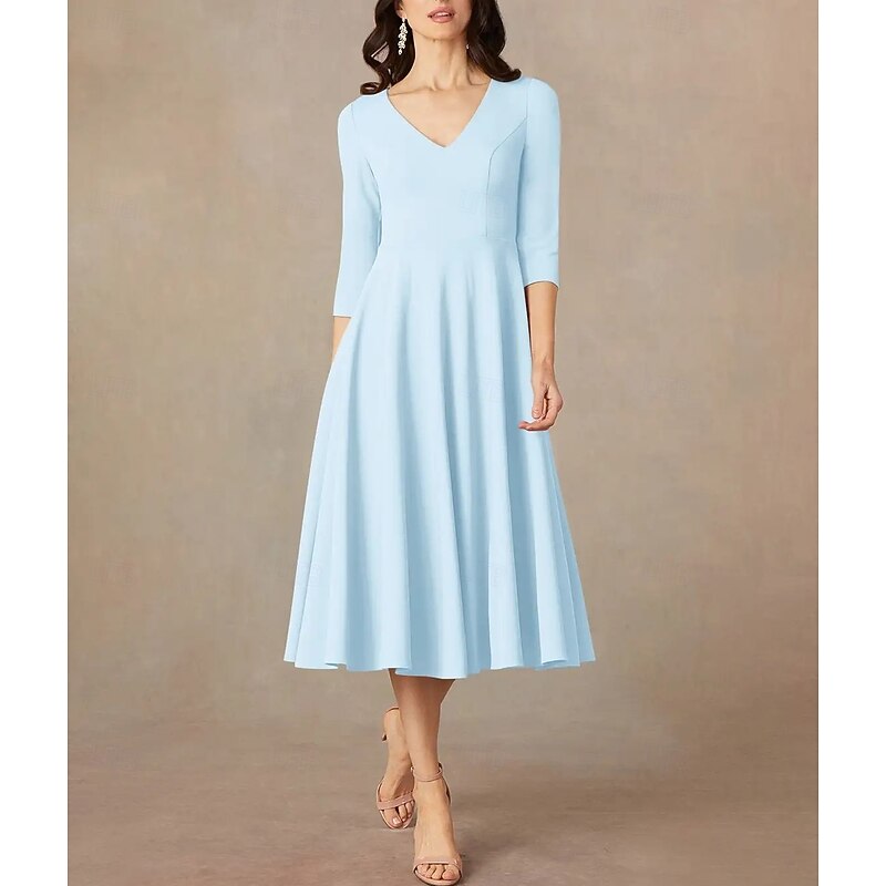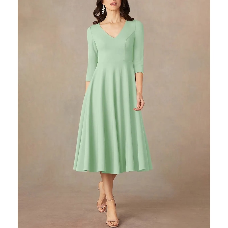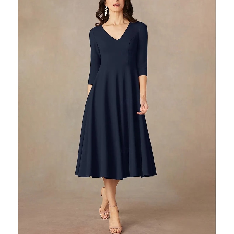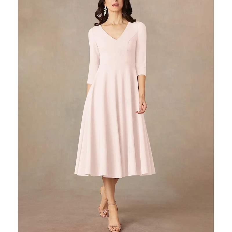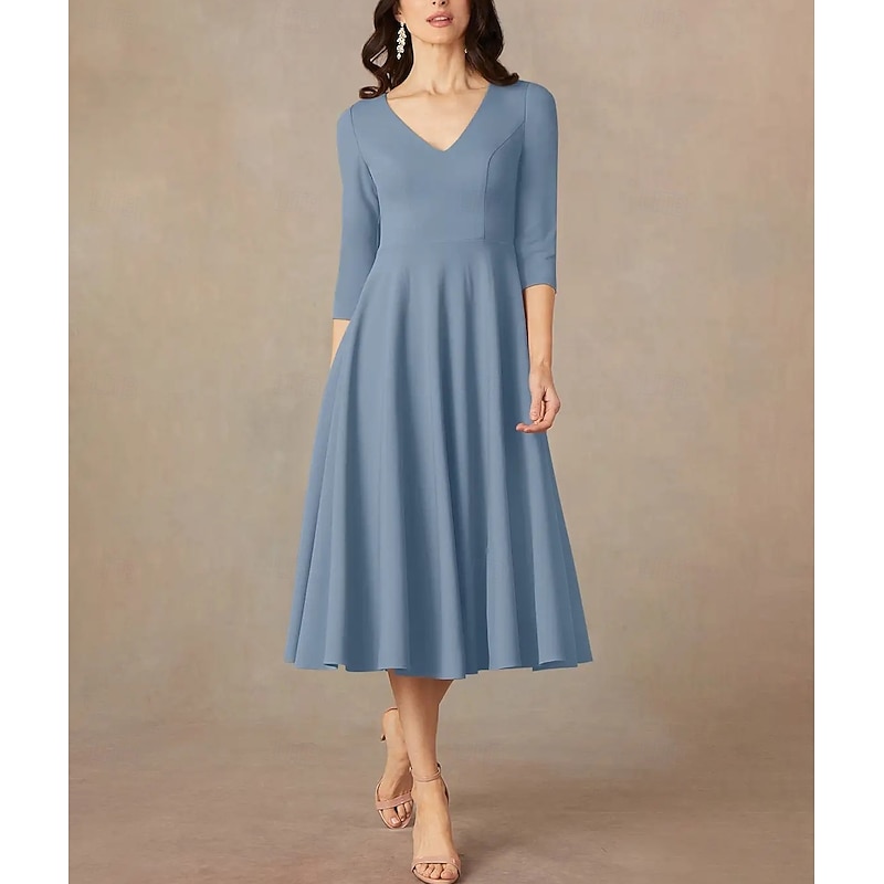 More information about A-Line Mother of the Bride Dress Wedding Guest Elegant Minimalist V Neck Tea Length Italy Satin 3/4 Length Sleeve with Draping