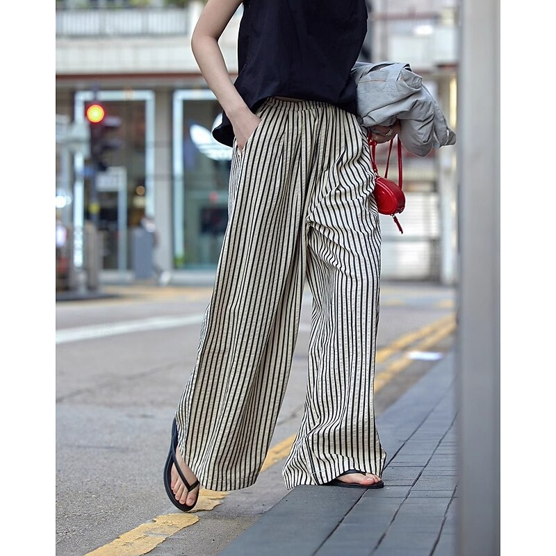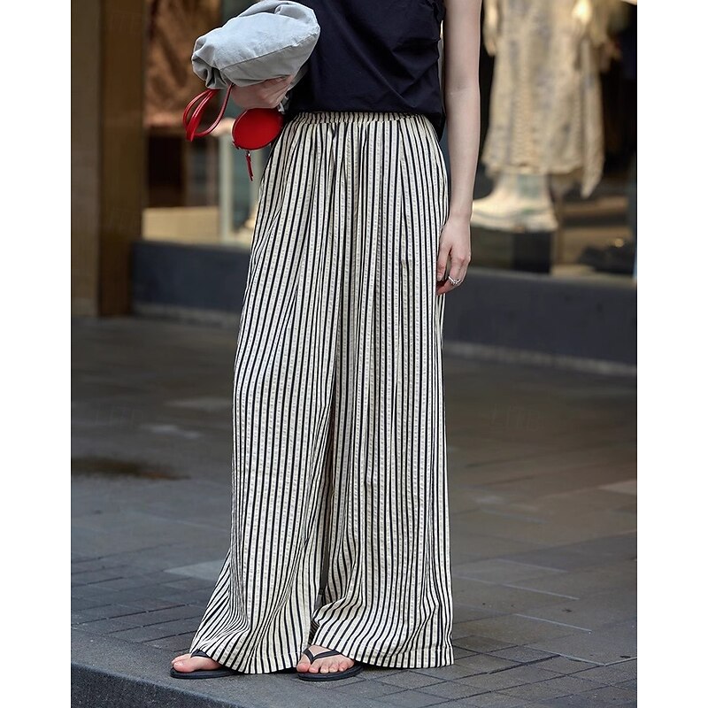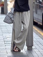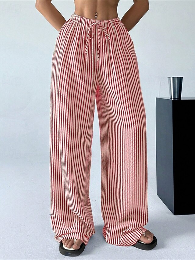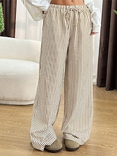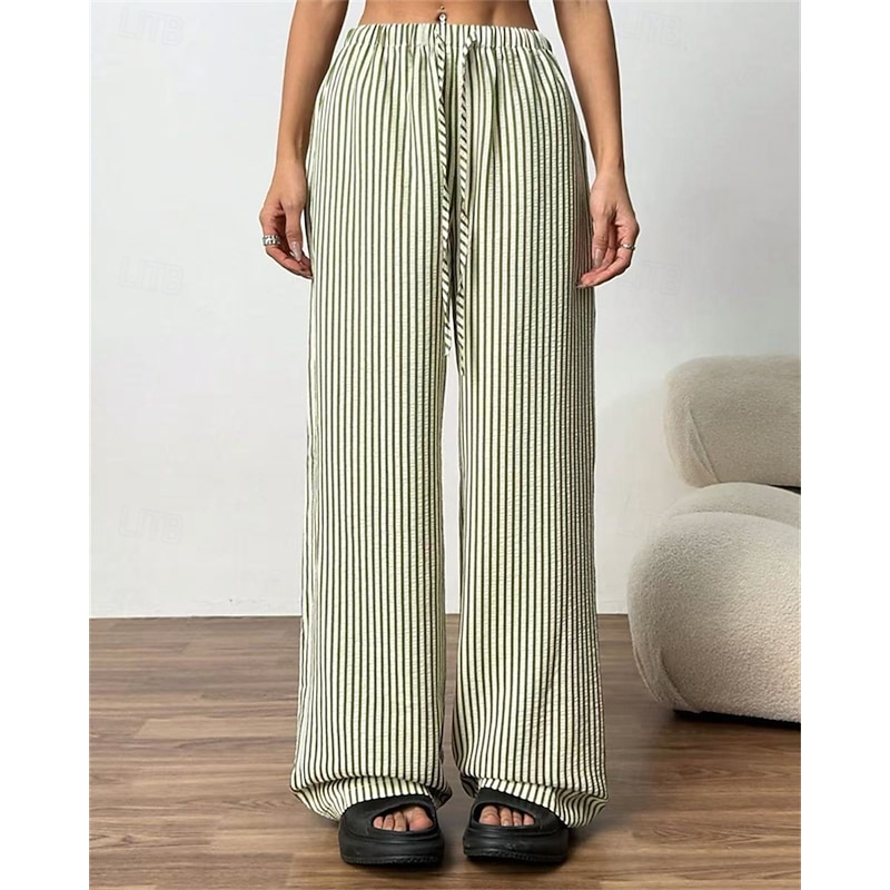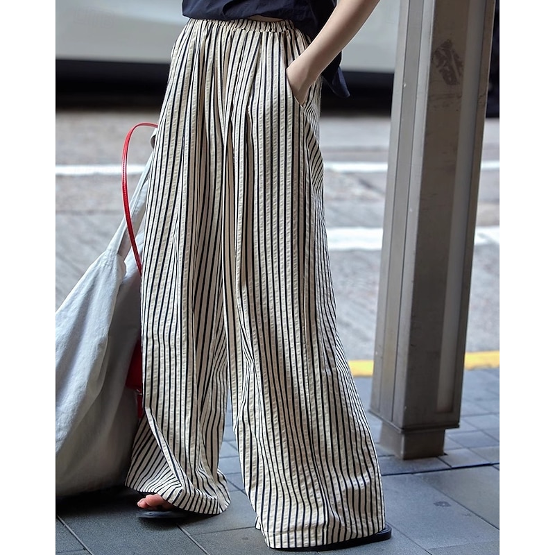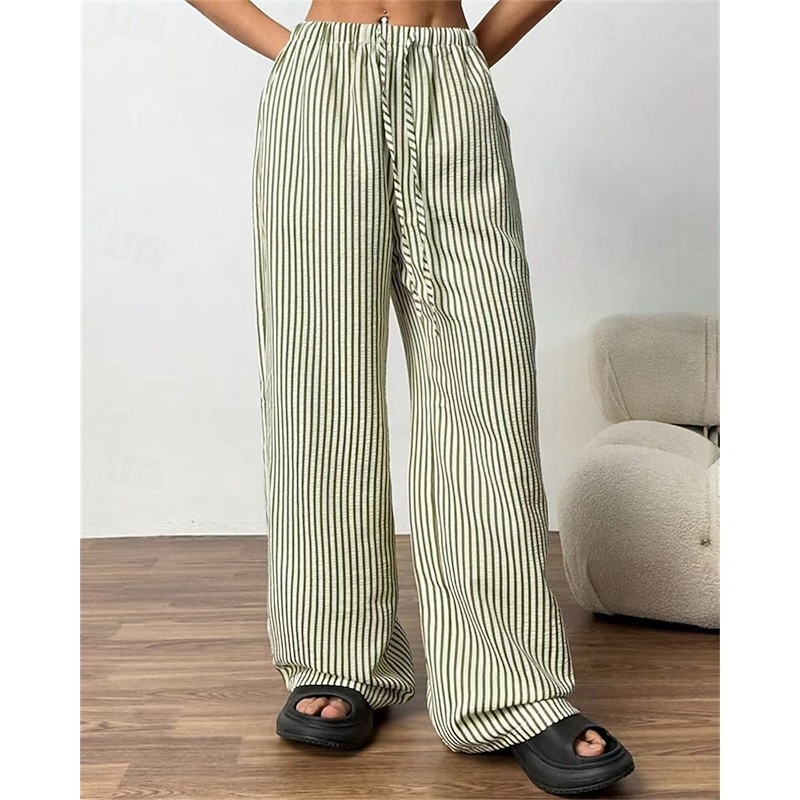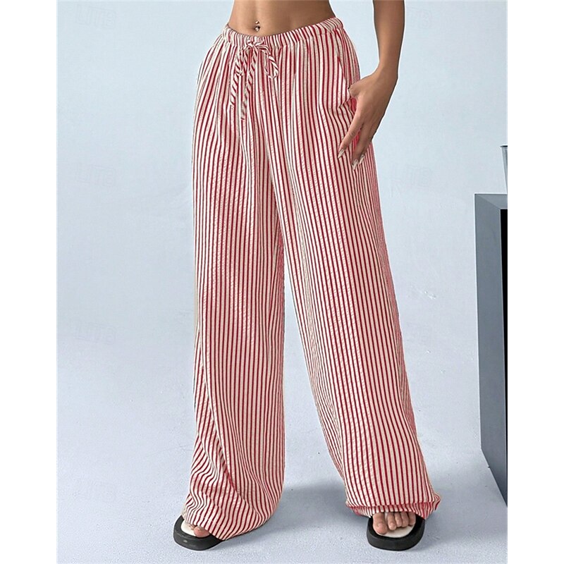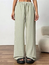 More information about Women's Wide Leg Chinos Pants Trousers Vacation Vintage Streetwear Full Length Medium Waist Striped Pocket Elastic Waist plush Micro-elastic Outdoor Vacation Daily Apricot Black Red Green