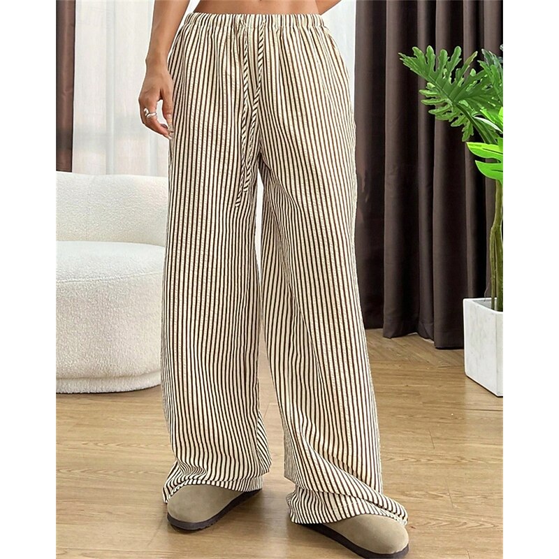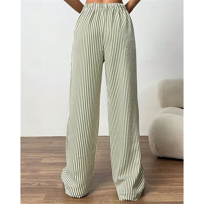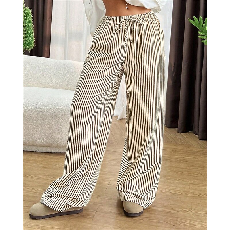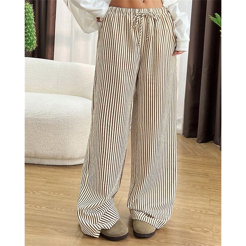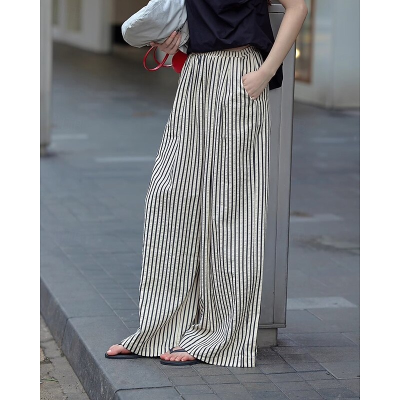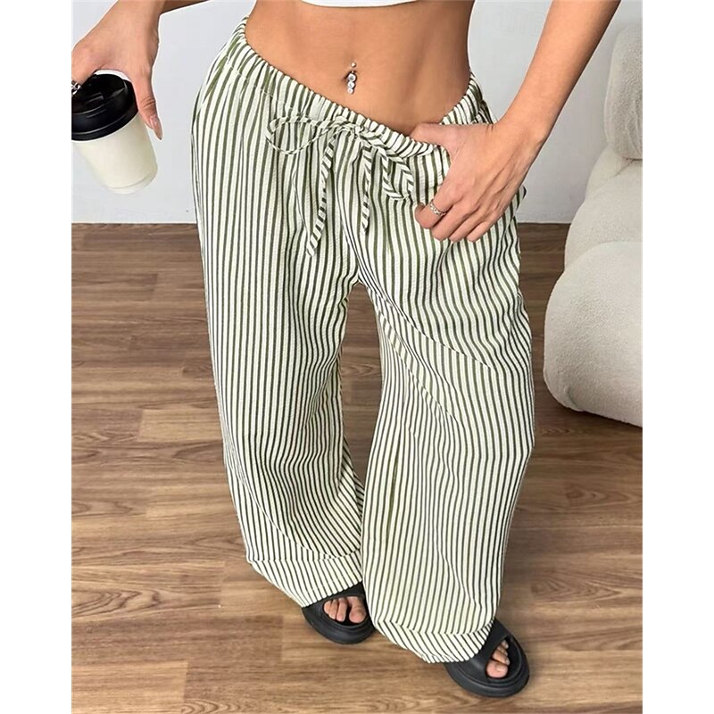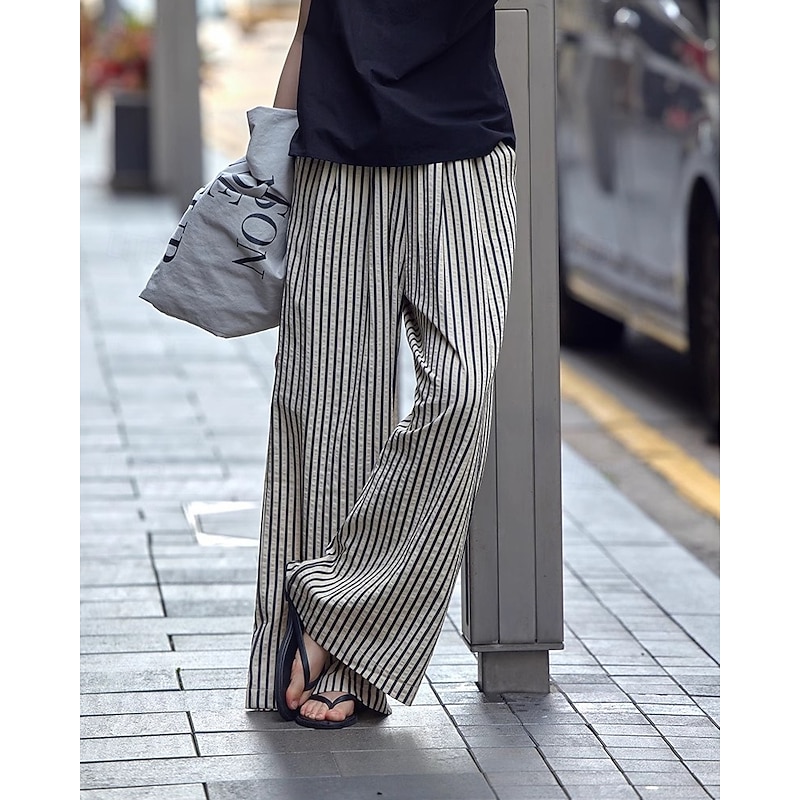 More information about Women's Wide Leg Chinos Pants Trousers Vacation Vintage Streetwear Full Length Medium Waist Striped Pocket Elastic Waist plush Micro-elastic Outdoor Vacation Daily Apricot Black Red Green