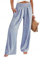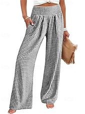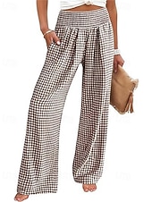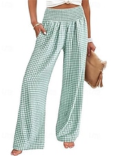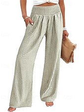 More information about Women's Wide Leg Pants Trousers Streetwear Ethnic Style Casual Full Length High Waist Medium Waist Plaid Elastic Waist plush Micro-elastic Outdoor Vacation Daily Black Pink Army Green Blue