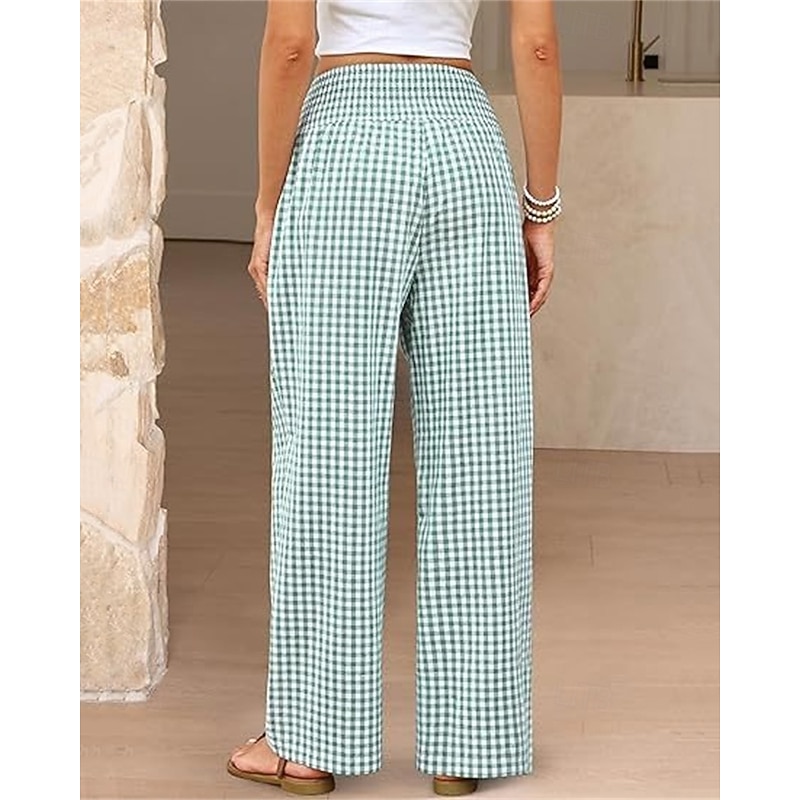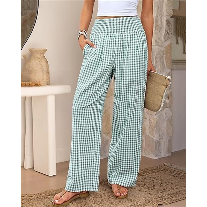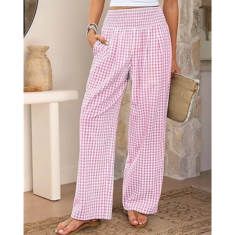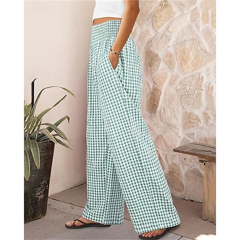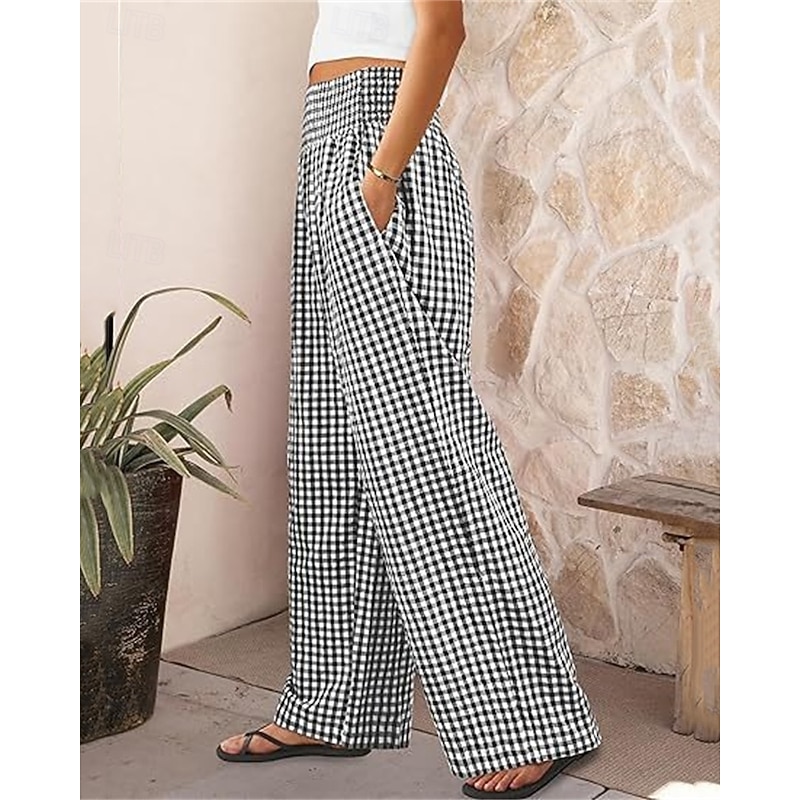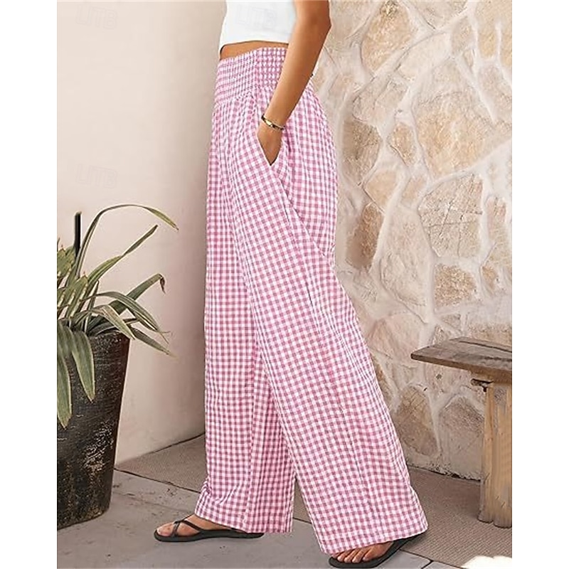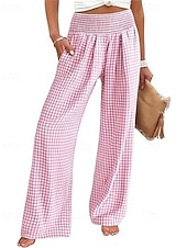 sizzling ! Women's Wide Leg Pants Trousers Streetwear Ethnic Style Casual Full Length High Waist Medium Waist Plaid Elastic Waist plush Micro-elastic Outdoor Vacation Daily Black Pink Army Green Blue