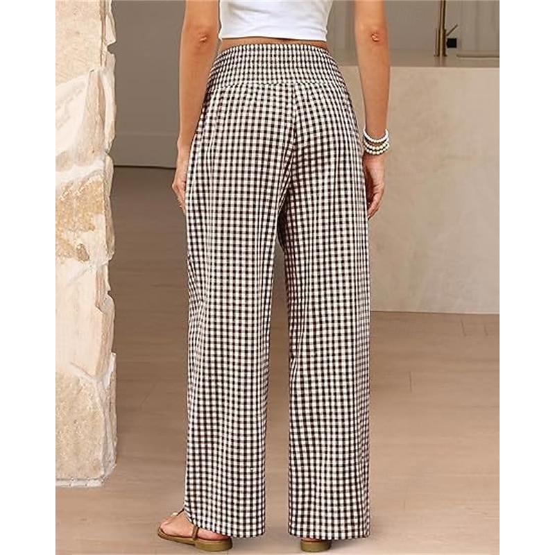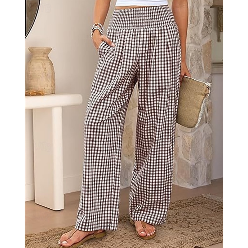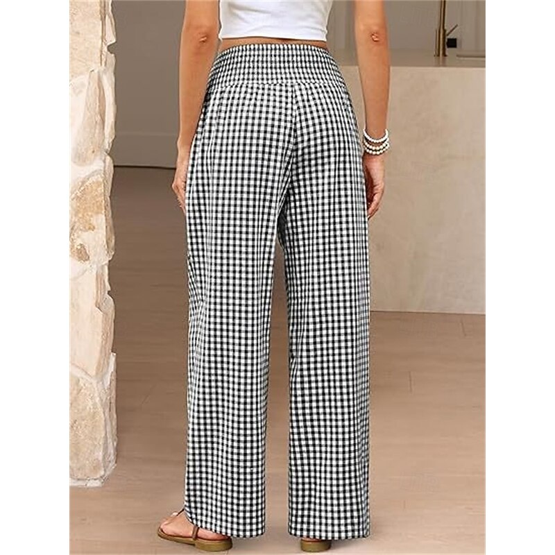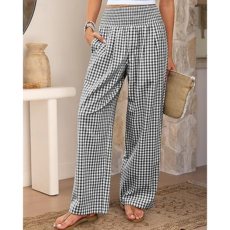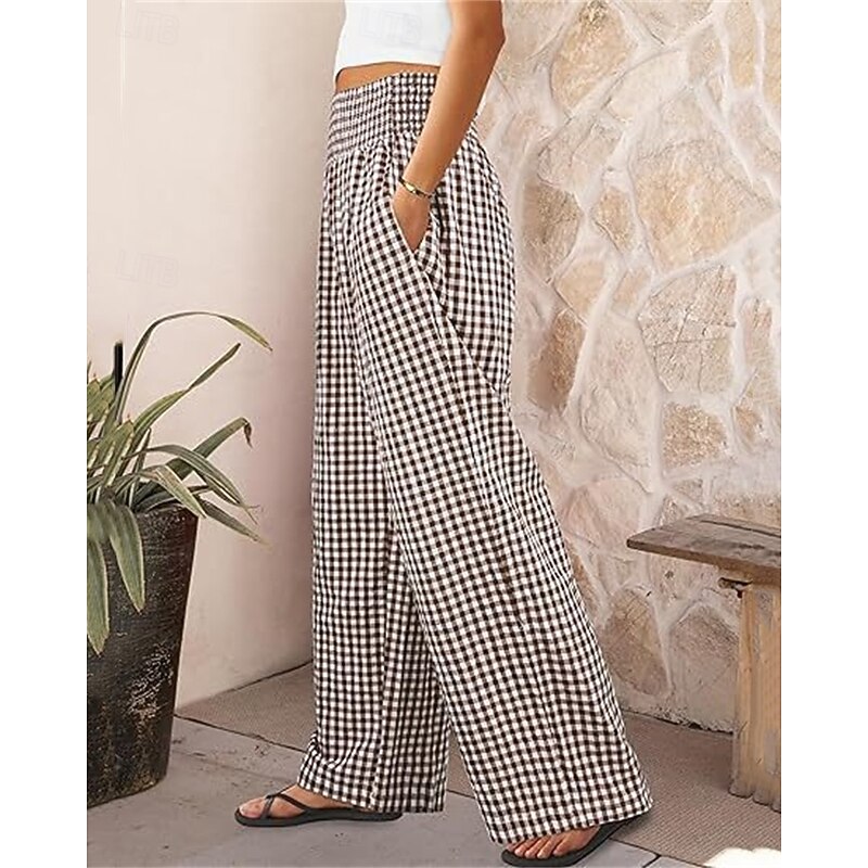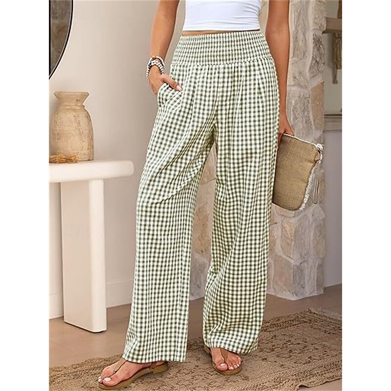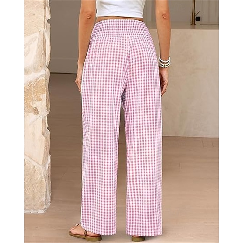 sizzling ! Women's Wide Leg Pants Trousers Streetwear Ethnic Style Casual Full Length High Waist Medium Waist Plaid Elastic Waist plush Micro-elastic Outdoor Vacation Daily Black Pink Army Green Blue
