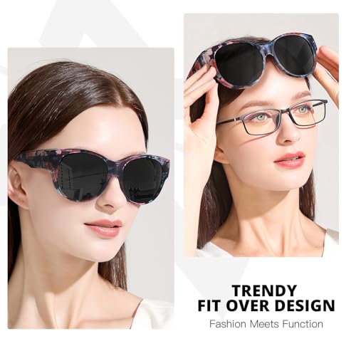 Myiaur Polarized Fit Over Glasses Sunglasses for Women, Trendy Wear Over Glasses for Driving with UV400 Protection