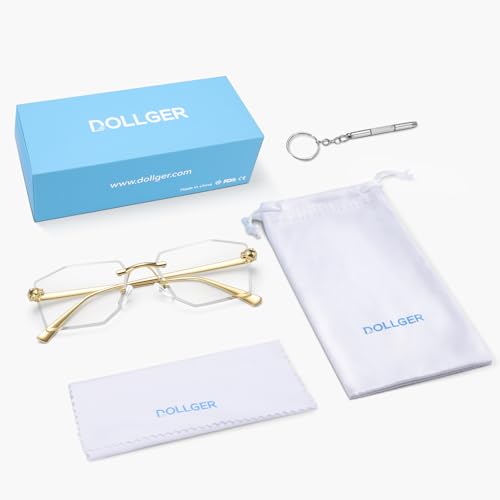 Dollger Rimless rectangle Sunglasses Women Men Fashion Trendy Metal Tinted Shades Clear Y2k Sunglasses